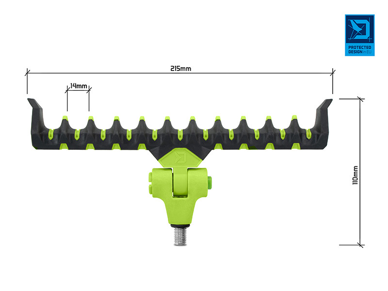 Wysokiej jakości podpórka na wędkę zaprojektowana w kolorach naszej innowacyjnej serii feederowej Delphin Reaxe. Jak sama nazwa wskazuje, model Flexi jest w pełni regulowany za pomocą prostego systemu dociskowego, który pozwala dostosować nachylenie wędki podczas łowienia na rzece, przy wietrznej pogodzie lub na nierównym terenie. Jest wystarczająco szeroki, aby dostosować pozycję wędki po zarzuceniu w celu uzyskania optymalnej krzywizny szczytówki bez konieczności zwijania nadmiernej ilości żyłki. Podpórka jest wykonana z wytrzymałych materiałów, dzięki czemu nie ulegnie łatwo uszkodzeniu lub zarysowaniu. Ma specjalny kształt, który utrzymuje wędkę na miejscu nawet w przypadku agresywnego brania. Powierzchnia jest pokryta gumowym materiałem, który chroni wędki przed uszkodzeniem. Posiada uniwersalny gwint kompatybilny ze wszystkimi standardowymi ramionami, uchwytami i bankstickami. Gumowa część na gwincie zapobiega obracaniu się podpórki. Flexi może być używana z dwoma wędkami.