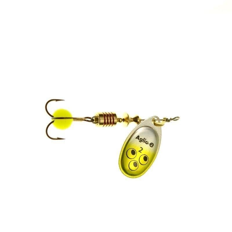 Projektując Aglię -e, wykorzystano zjawisko fluorescencji pod wpływem niewidzialnych dla ludzkiego oka promieni UV (ultrafioletowych). Paletka Aglii, pokryta została powłoką zawierającą pigment czuły na promienie UV, dzięki czemu na dużych głębokościach Aglia -e odbijając promienie UV, jest znakomicie widoczna i prowokuje drapieżnika do ataku i to w chwili, gdy inne przynęty stają się praktycznie niezauważalne. Na kotwiczce umieszczona jest kulka wykonana z miękkiego tworzywa, która imituje najbardziej pożądany przez ryby wszystkich gatunków pokarm, czyli ikrę. Kulka ta również odbija promienie UV i działa na dużych głębokościach jak reflektor wskazujący drapieżnikom drogę do celu.