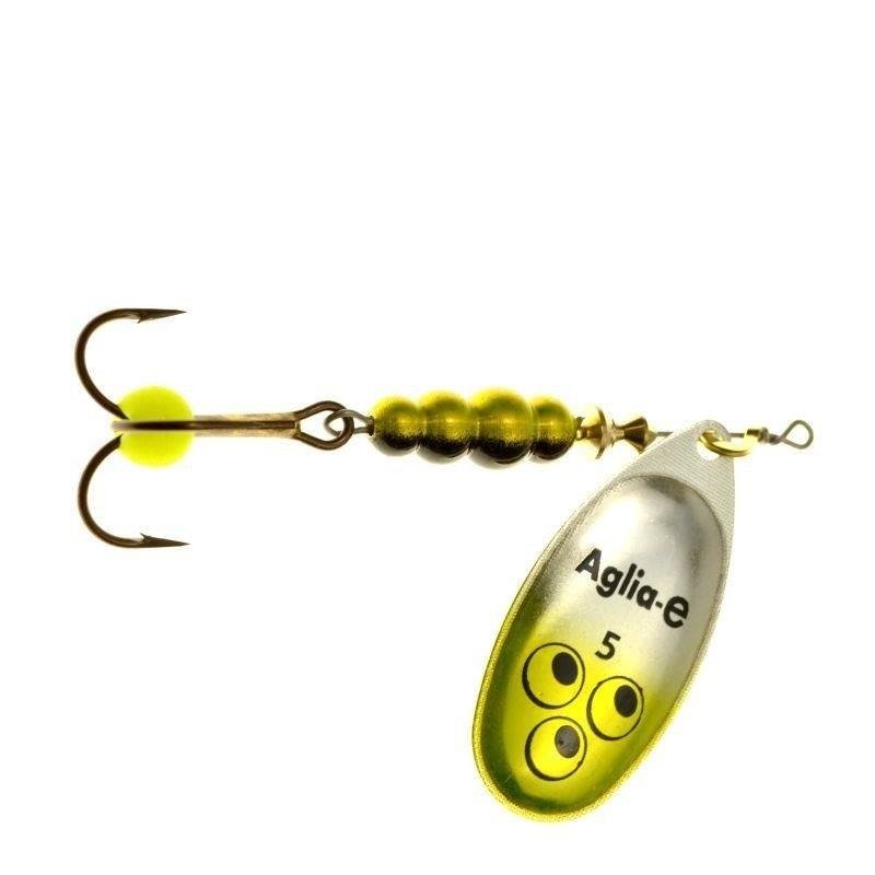 Projektując Aglię -e, wykorzystano zjawisko fluorescencji pod wpływem niewidzialnych dla ludzkiego oka promieni UV (ultrafioletowych). Paletka Aglii, pokryta została powłoką zawierającą pigment czuły na promienie UV, dzięki czemu na dużych głębokościach Aglia -e odbijając promienie UV, jest znakomicie widoczna i prowokuje drapieżnika do ataku i to w chwili, gdy inne przynęty stają się praktycznie niezauważalne. Na kotwiczce umieszczona jest kulka wykonana z miękkiego tworzywa, która imituje najbardziej pożądany przez ryby wszystkich gatunków pokarm, czyli ikrę. Kulka ta również odbija promienie UV i działa na dużych głębokościach jak reflektor wskazujący drapieżnikom drogę do celu.